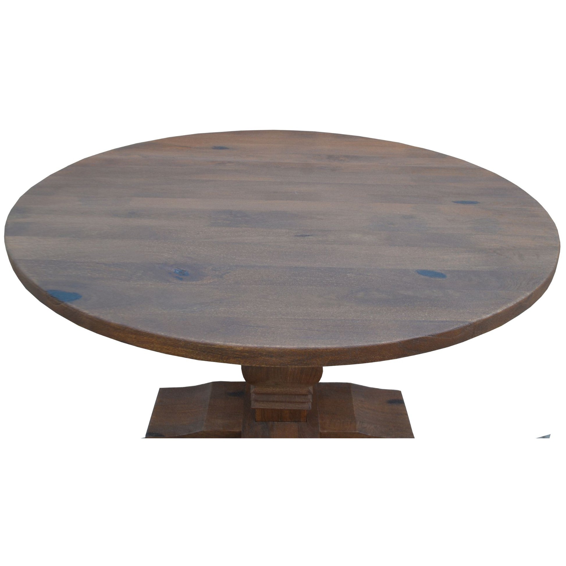 This smart-looking, round dining table in French provincial style is simply a visual feast. It is a splendid work of wood art, crafted by using the traditional construction of wood. The table features intricately carved legs for a touch of grandeur. The robust legs blend in with any interior decor style. The lavish 4-seater dining table is made of sustainably harvested mango wood with naturally occurring wood patterns. They give it an excellent look. The wood is known for its beauty, low maintenance, and high durability. The dining table in antique walnut colour looks even greater with a sandblast distressed finish. A one-year warranty is included with the simple-to-assemble dining table.