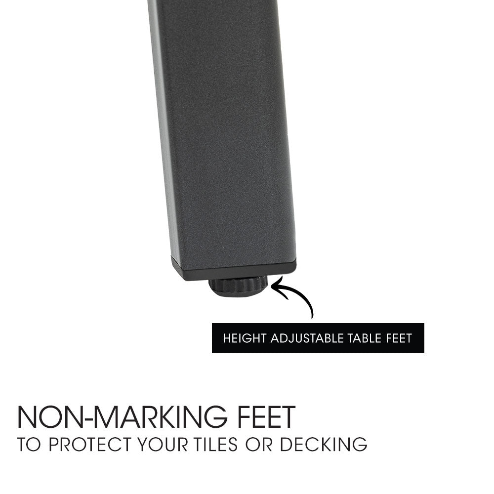 Crafted with a sturdy frame and protected by superior e-coating, it offers premium corrosion resistance and unmatched durability. Non-marking height adjustable feet provide extra care for your tiles or decking.