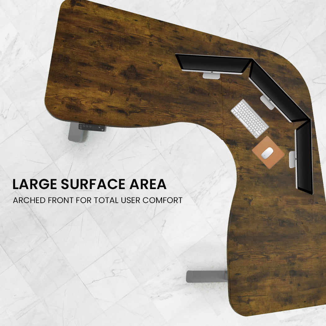 The innovative FORTIA Motorised Height Adjustable Sit/Stand Corner Desk has first and foremost been designed to provide comfort and health benefits. The large surface allows you to set up as many monitors as you need. You can also program up to 4 preset heights via the control panel, or adjust to any specific height, right up to 120cm.