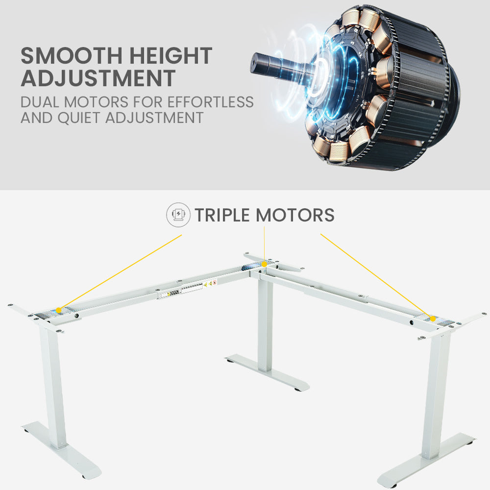 Fortia Corner Standing Desk, 1730W x 1730W x 750D, 3 Motors, 120kg Load, Sit to Stand Up Electric Height Adjustable, Black/White Frame