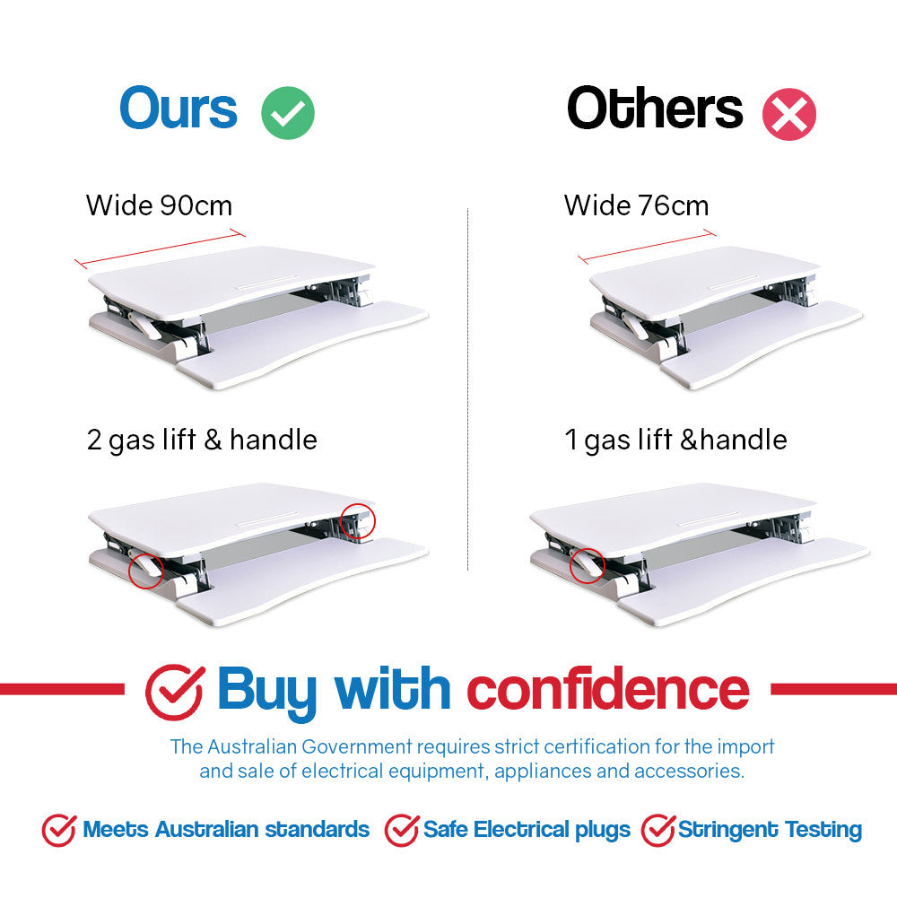 Fortia Desk Riser 90cm Wide Adjustable Sit to Stand for Dual Monitor, Keyboard, Laptop, White