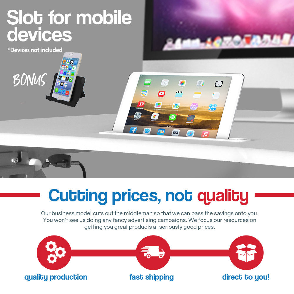 With its two tiered design and 15kg weight capacity, you are never short of space to work on when using the FORTIA Desktop Riser. The sturdy top surface can accommodate multiple setups such as a single monitor, dual monitors as well as a laptop + monitor. The top surface also features a groove to hold a tablet or notebook. The detachable lower deck, which raises in sync with the top surface, can easily hold a keyboard side by side with a mouse. A standalone phone holder is included as a bonus accessory to ensure all your key electronics are at your fingertips.