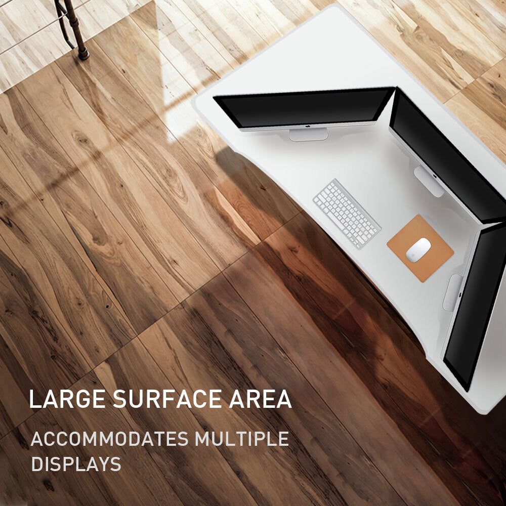 With a large 160cm wide surface there’s enough space to accommodate up to 3 displays with the added benefit of extra workspace on each side. It will also integrate with your home office or a corporate workspace.