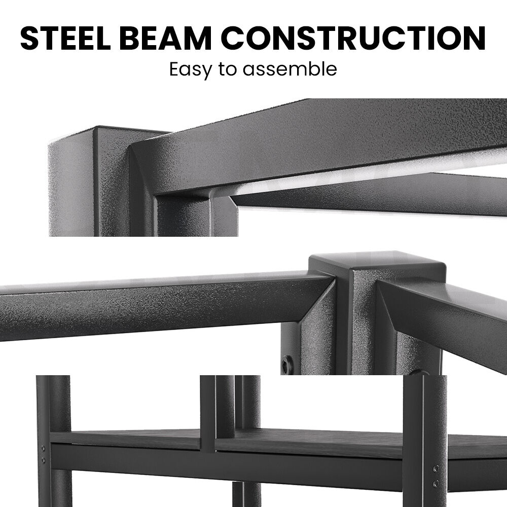 This isn't just a bed - it's your base of operations. The Overdrive series metal loft bed is built for gamers who need more from their space. Sleep up top, game down below. With built-in storage and layered shelves, there's a spot for everything - consoles, games, books, gear, even that mystery snack you forgot about.