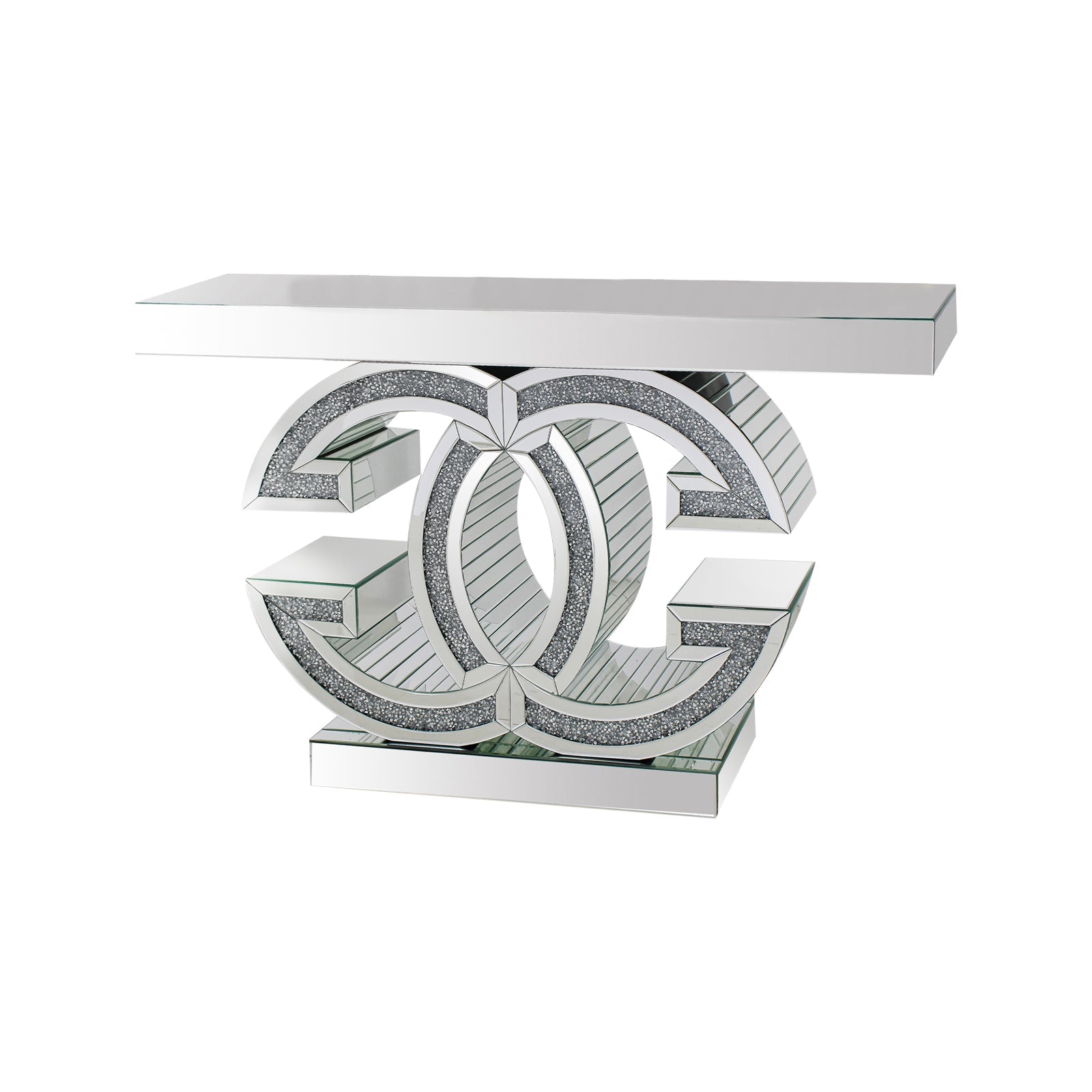 Hall Table MDF & Mirror & Crushed Acrylic Diamonds Silver Colour