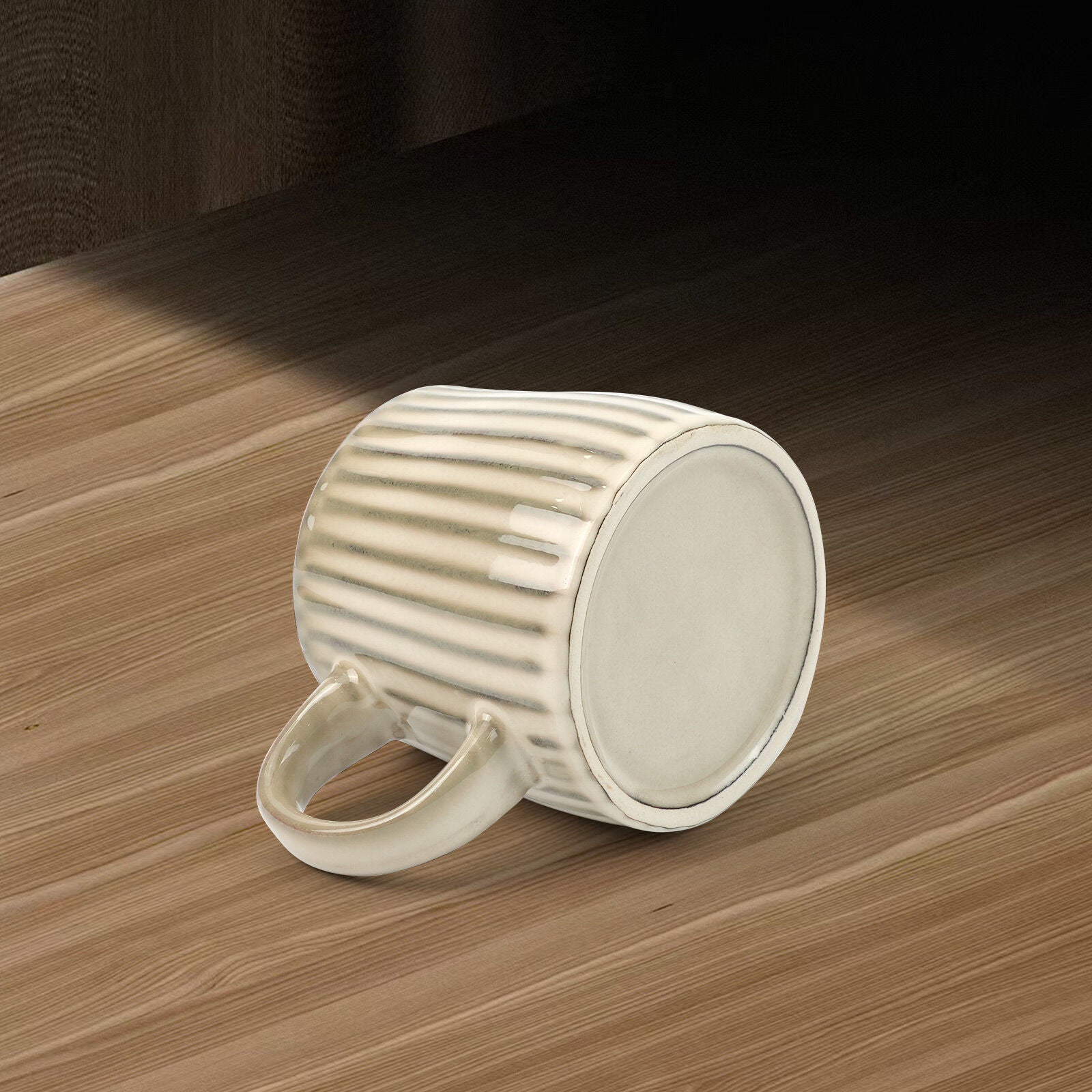 This stylish mug features earthy tones with a matte, speckled finish that evokes a natural, calming aesthetic. The ribbed striped pattern and soft tones create a minimalist yet refined design, making it a versatile addition to your drinkware collection.