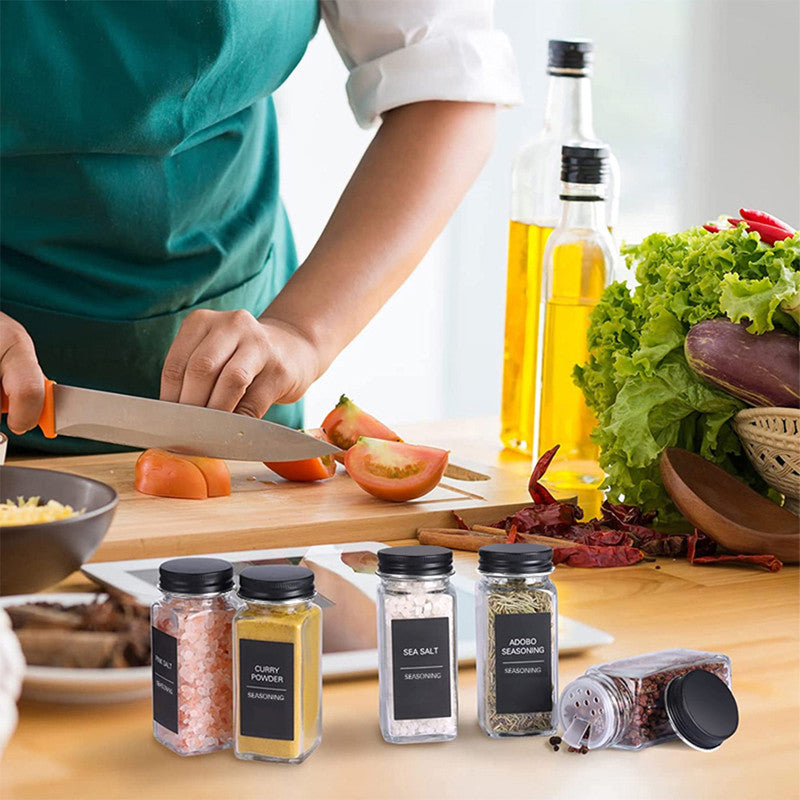 - Crafted from durable clear glass with airtight metal lids, these square jars preserve freshness while giving your pantry a clean, uniform appearance. Each jar is equipped with a dual shaker lid for dispensing both fine and coarse spices, offering versatility for everyday cooking needs.
