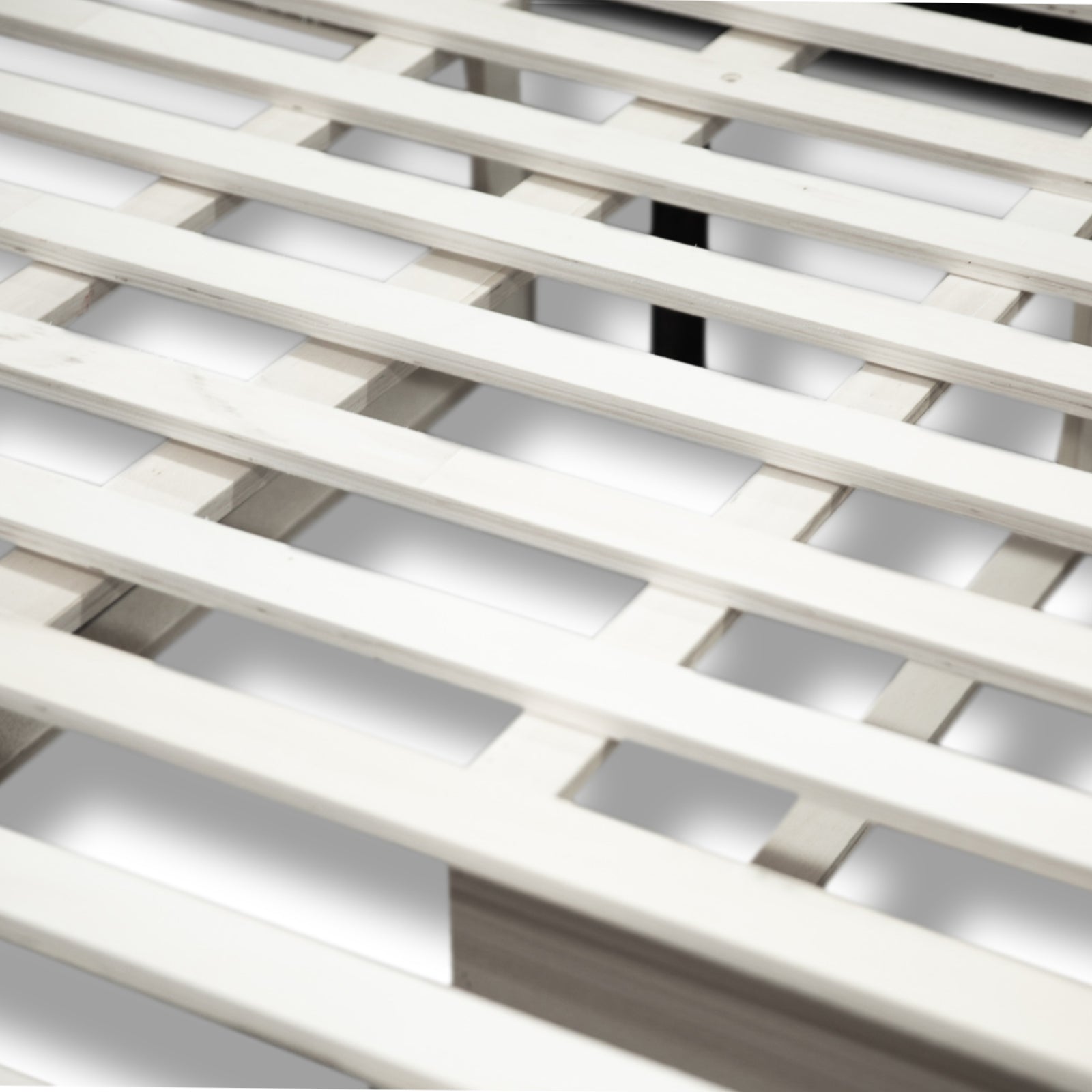 Now is the time to transform your bedroom into an ultra-luxurious retreat. Fill your personal space with this beautiful king bed with 4 drawers having an eye-catching look and design. The magnificent furniture piece in stone colour is made of sustainably harvested MDF wood, and special particle board. MDF wood is known for its resilience to moisture damage and great strength. Fully upholstered in soft polyester, the bed features thick foam and a comfortable bedhead with tufting and classy details. Robust legs made of rubber wood, strong slats, and central support provide the bed with toughness and great durability. The slats give it an excellent weight-bearing capacity. Not only that, 4 spacious drawers - 2 footboard drawers and 2 side drawers' maximize storage space, giving the bed great usability. All the drawers have full metal extension runners that help you keep the room tidy and well organized. The king-size bed that goes well with a variety of interior decor styles comes with a one-year warranty.