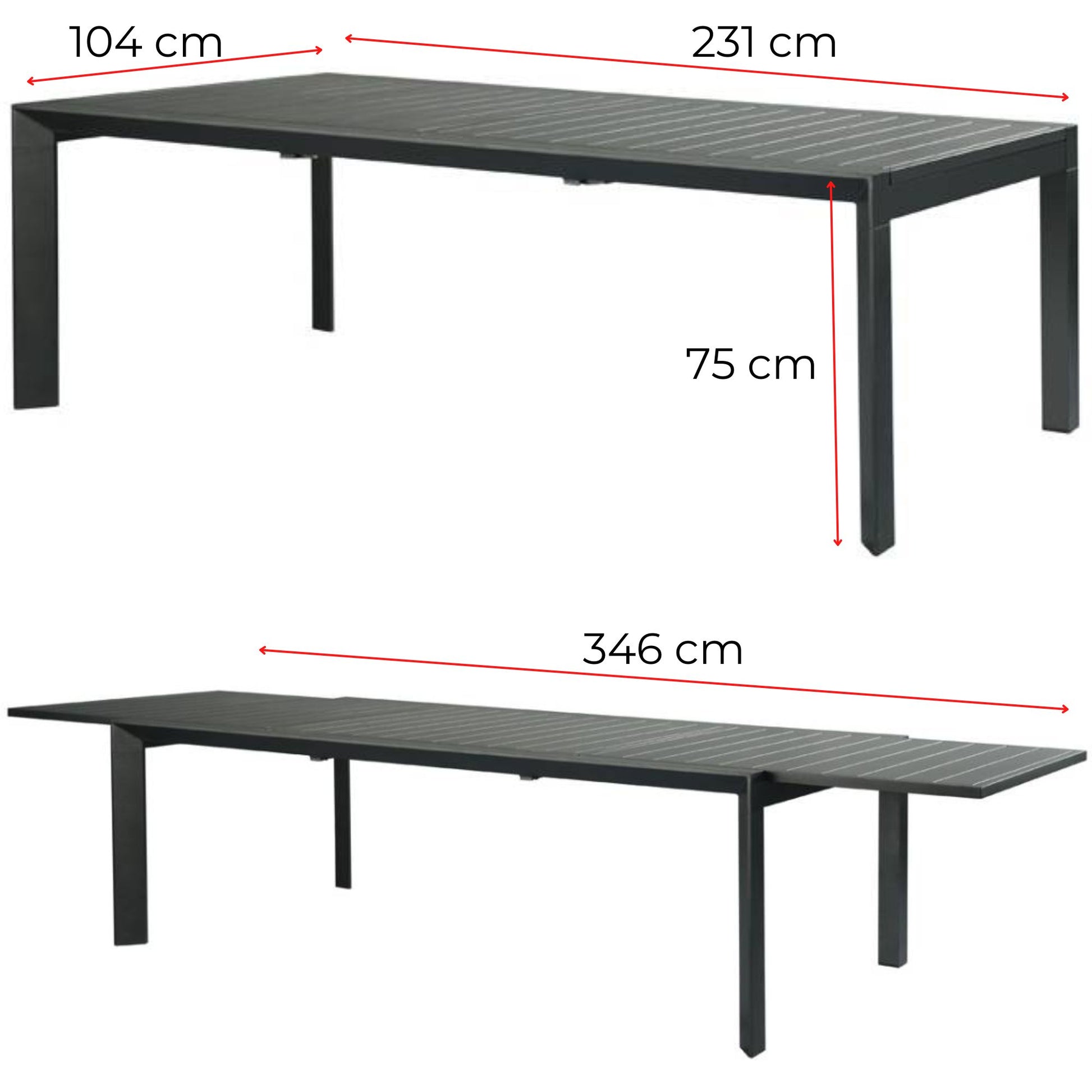 Iberia 13pc 230-345cm Aluminium Outdoor Extensible Dining Table Chair Charcoal