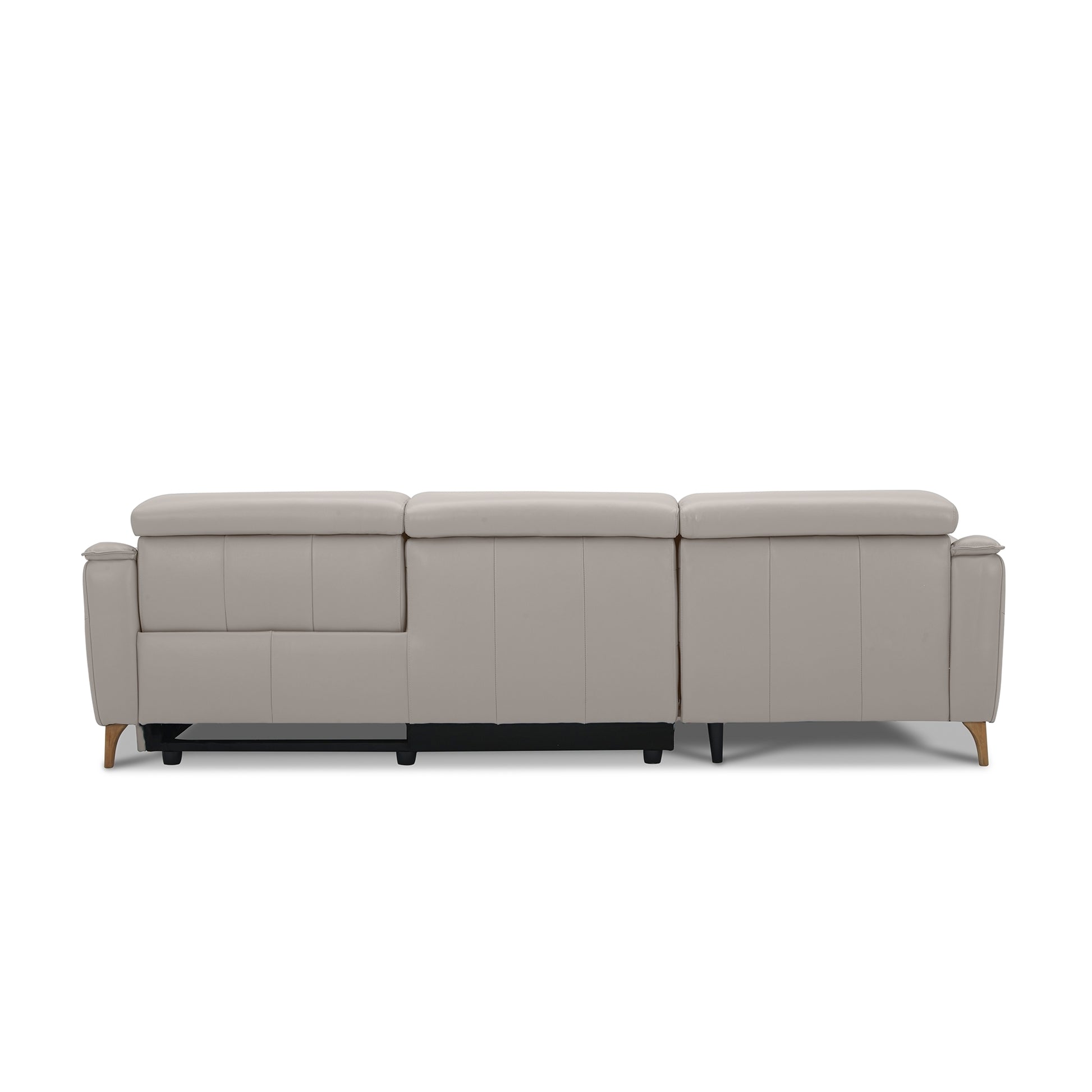 Inala 2 Seater Genuine Leather Sofa Lounge Electric Powered Recliner RHF Chaise Light Grey