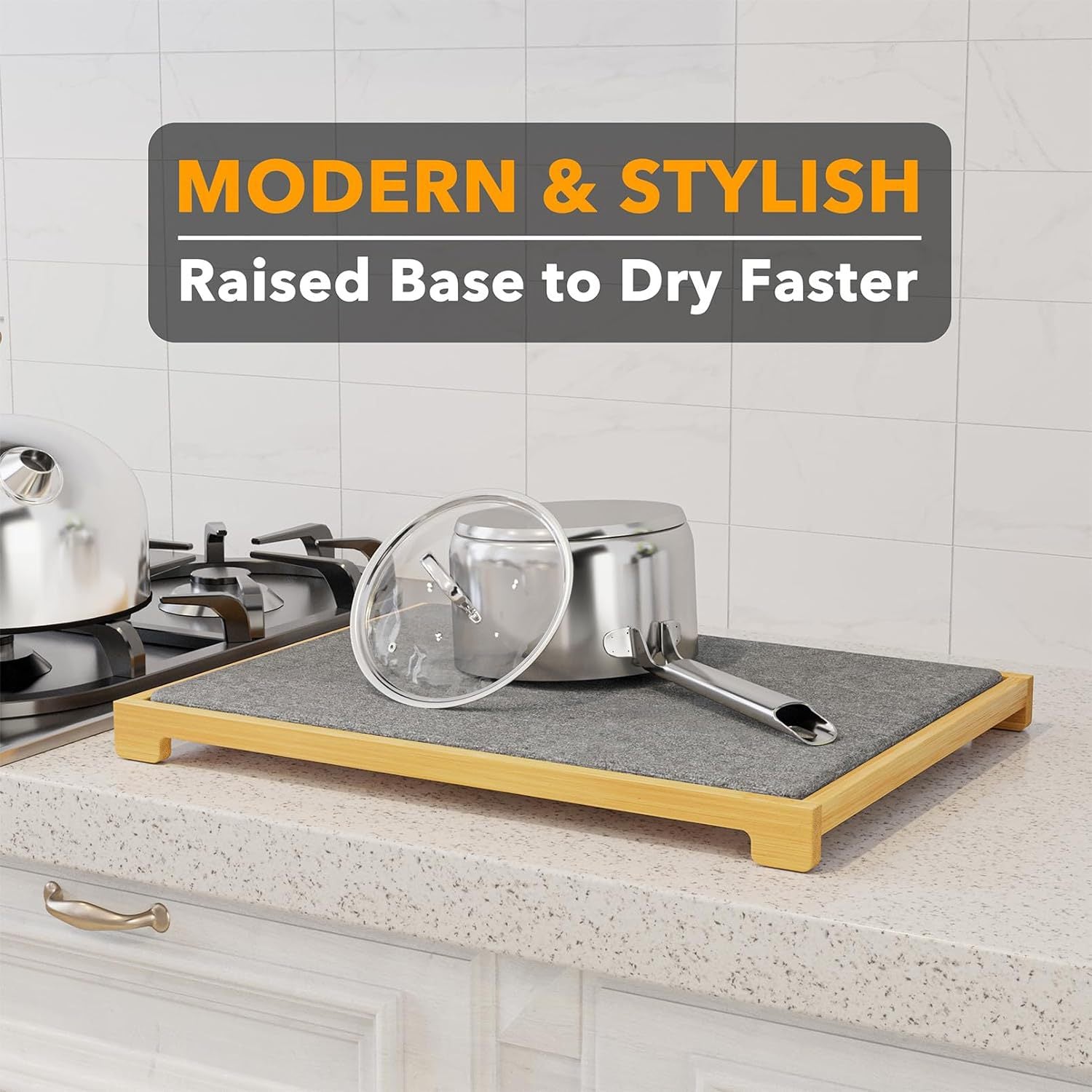 Instant Dry Stone Dish Drying Mat with Bamboo Rack - 2 Ways to Use, Quick Absorbent & Stylish