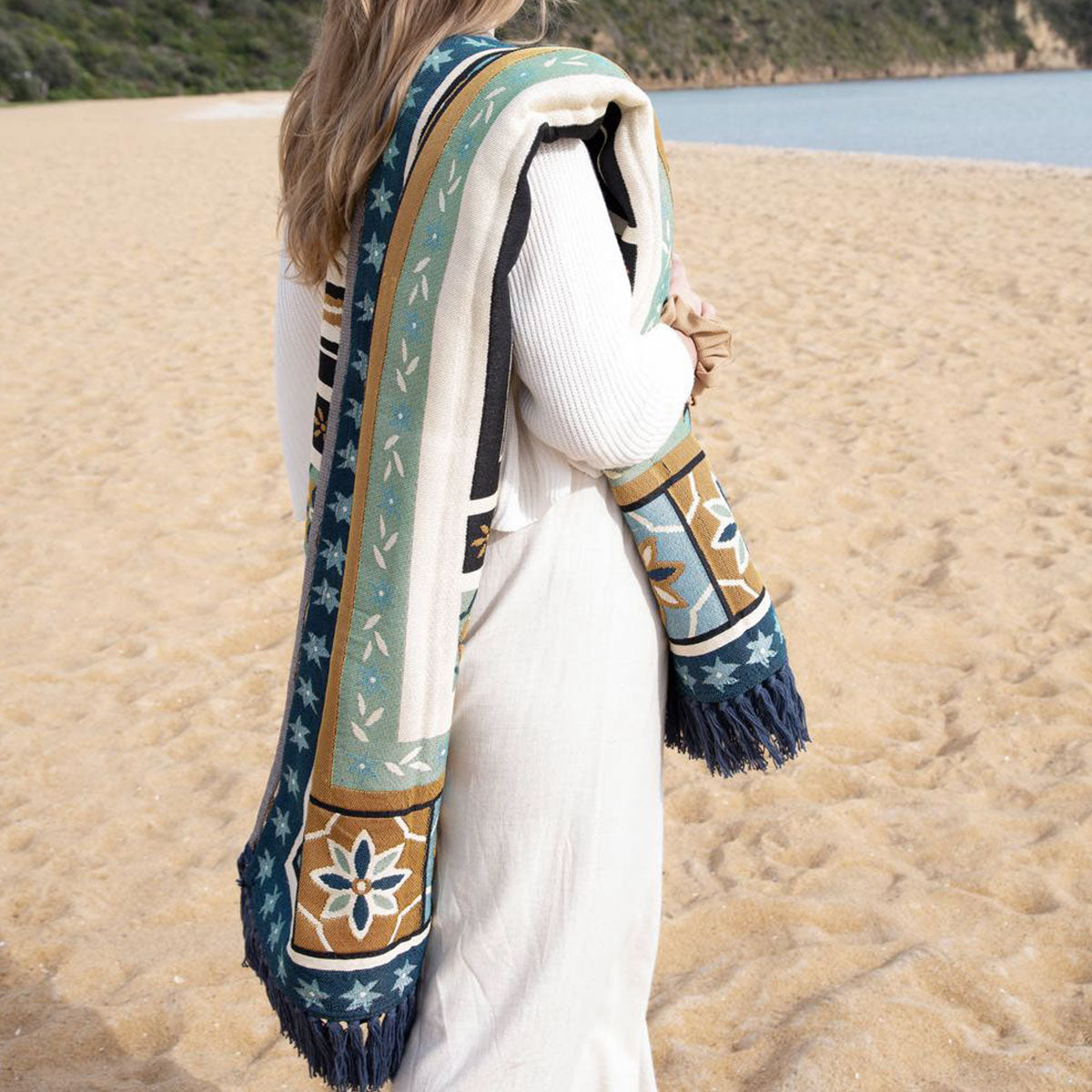 The Kasbah Luxury Fringe Throw 130 x 160cm by J Elliot Home is more than meets the eye, its versatility is endless from a throw to a beach picnic rug or even a wall hanging, the opportunities are endless. Inspired by the streets and colours of Morocco. Its bold and brave design elements will make it the centrepiece of any space it resides in. Available in a Pink, Black and Blue multi explore the entire Kasbah range! Made from quality and soft feel Polyester Cotton fabric.