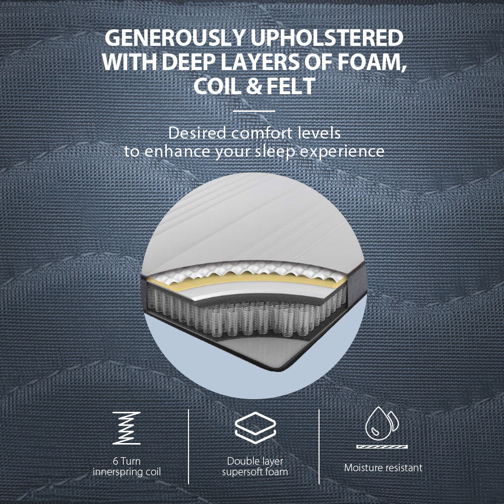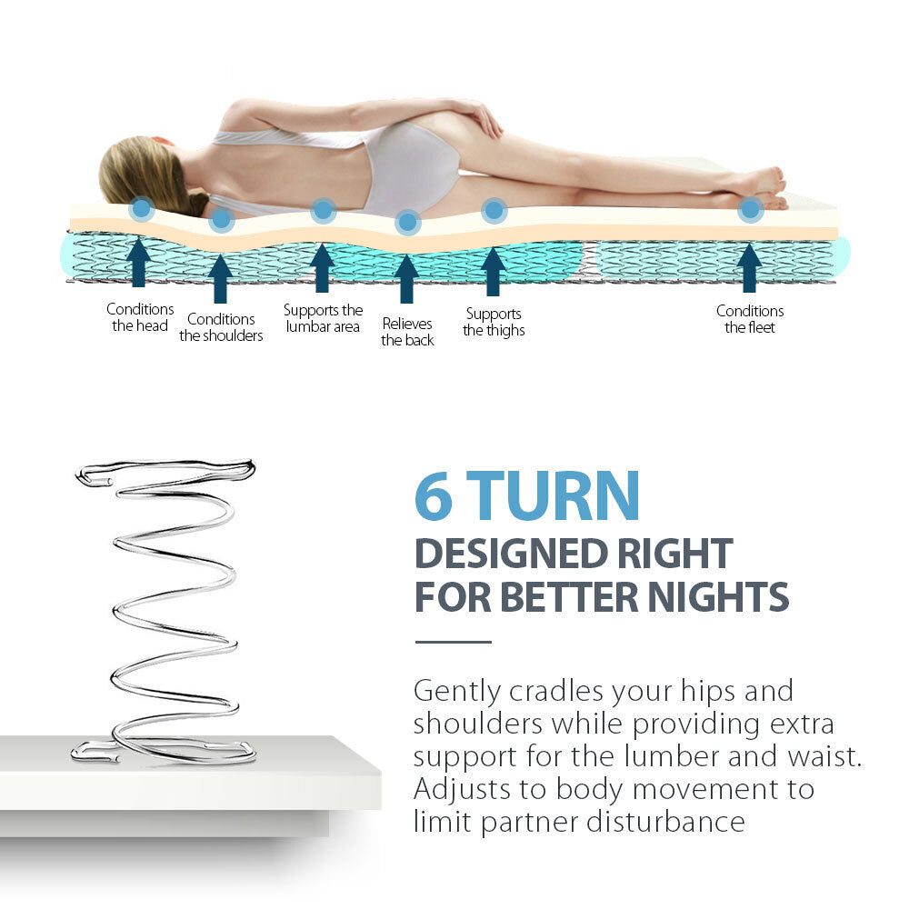 Kingston Slumber mattresses come with 6 turn innerspring coils that elevate the tranquility of your sleep. Delivering just the right support to your body, the medium-firmness is key to providing soothing relief to your body especially the back, shoulders, hips, knees and joints.