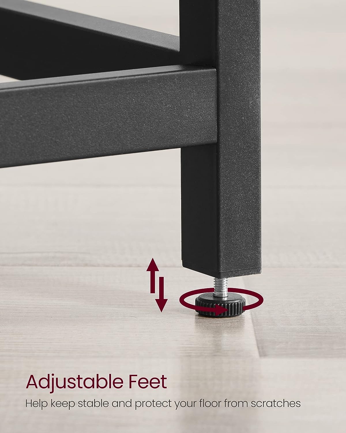- Transform your home office into a creative haven with this Corner Desk. Featuring an industrial design look, this desk is perfect for giving your space a modern upgrade. With its spacious desktop and two shelves, you'll have plenty of room to store all your office supplies and keep your workspace organized. Plus, its sturdy construction ensures that it will last for years to come. Upgrade your home office today with this fantastic Corner Desk.