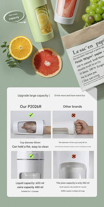 - Capacity: 600ML (Juicing Capacity 450ML)
