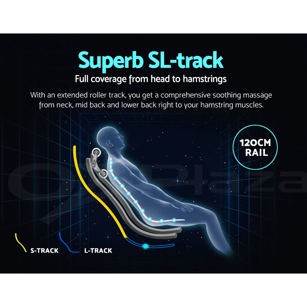 Incorporating the latest smart massage technology, our Livemor Ozeni Electric Massage Chair is designed to deliver a truly exceptional massage experience synonymous with the human touch. Among its many technological advancement is an extensive SL track that provides full body massage coverage from your head right to your hamstring muscles. The roller track actually follows the curvature of your spine and extends beyond to your thighs to ensure that all part of your body is amiss with its soothing massages. Better still, the massage chair also has an automatic body scanning function that maps out the key areas of neck and back for a consistent massage. With up to four full body massage programs, eight partial programs and eight complex massage techniques, you are certainly not lacking in choice. Adjustments can also be made for massage intensity and speed as well as width. Not least, you can get to enjoy your zero-gravity massage with your favourite music or eBook via a convenient bluetooth connection.