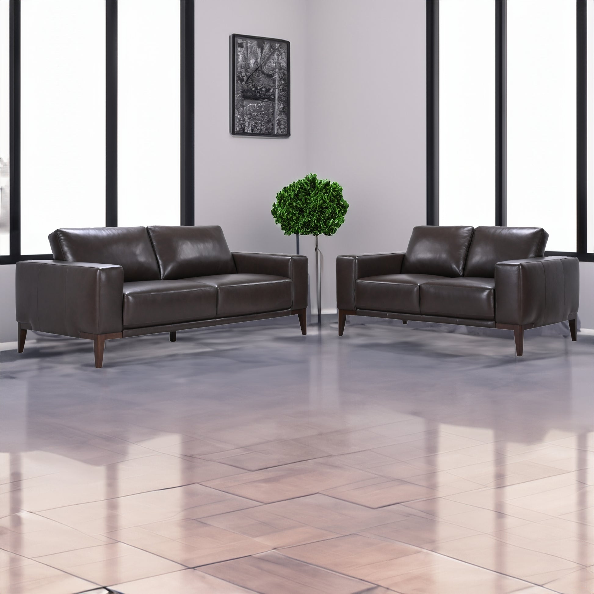 Lorenzo 2 + 3 Seater Sofa Leather Upholstered Lounge Set - Chocolate