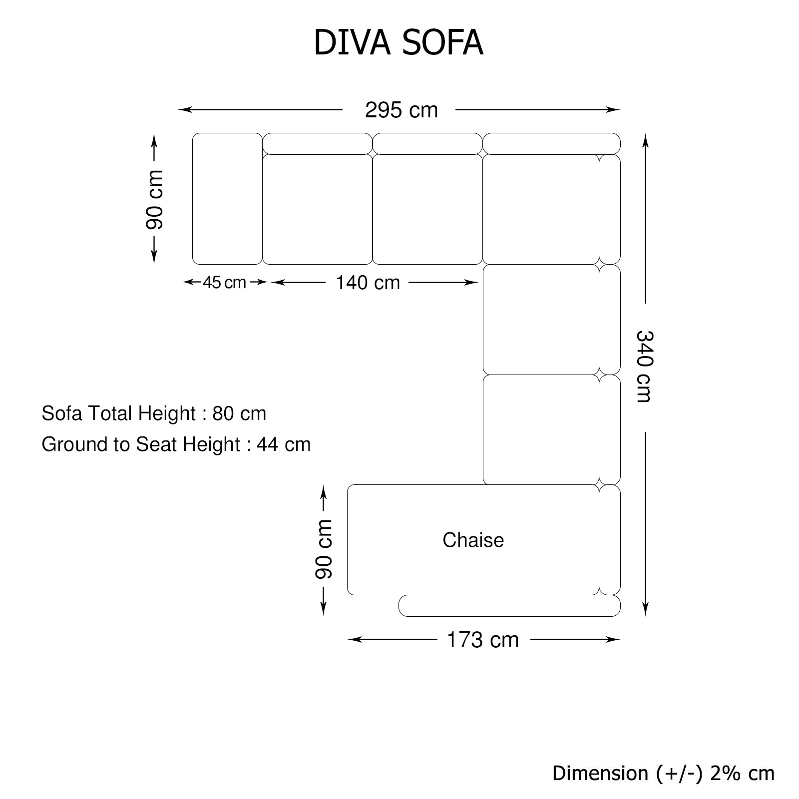 2 Seater: L-140 x W-90 x H-85