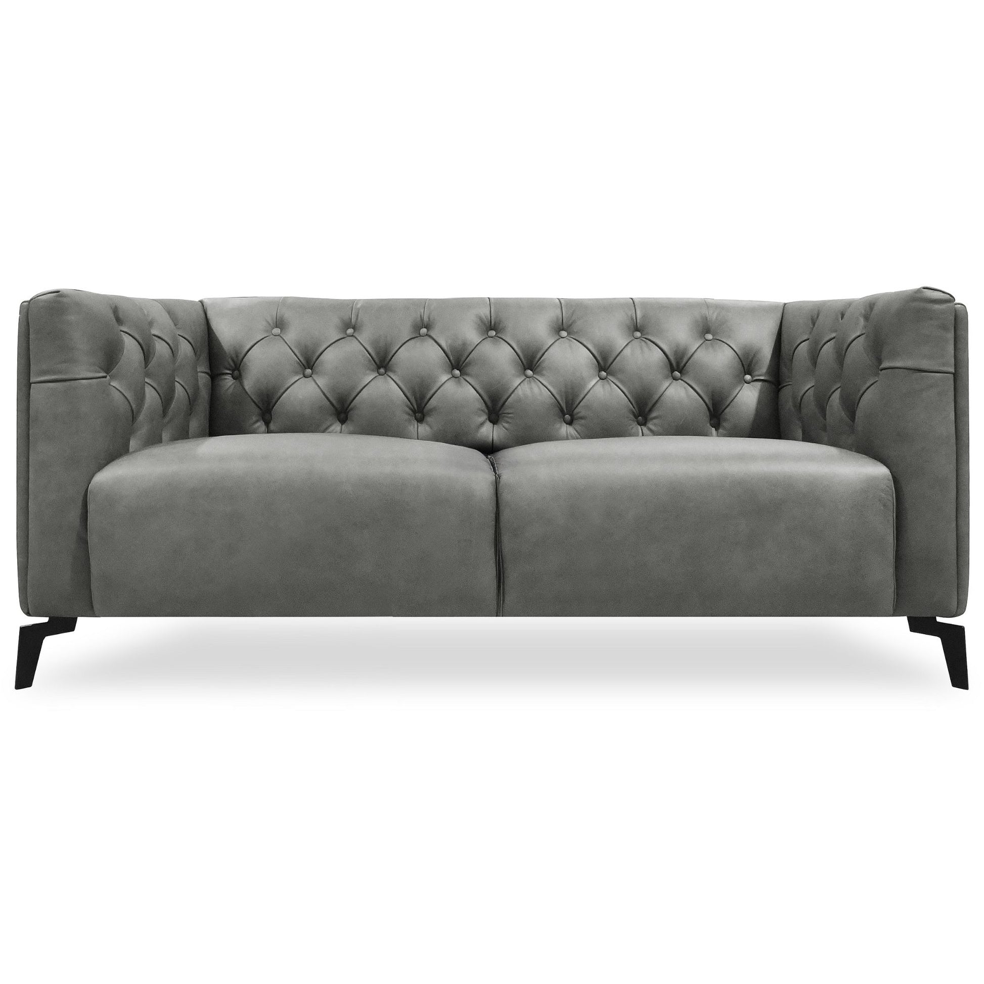 A few pieces of furniture define luxury. One such piece of furniture is this opulent sofa. This 2.5 seater sofa is designed in the modern style and is an epitome of magnificent craftsmanship. It showcases luxe aesthetics, featuring a high arm profile with diamond button tufting details. The sofa has a very elegant appearance thanks to its full top grain Forli leather upholstery. The dark grey sofa has fixed seats that are raised to the right height by strong, black metal legs. The beautiful piece of furniture also features high-density foam and zig-zag springs that offer relaxing comfort. The sofa's structural frame is composed of solid wood and plywood, giving it strength and resilience. The frame has a five-year warranty; the foam and springs have a three-year warranty; and the leather and stitching have a one-year warranty.