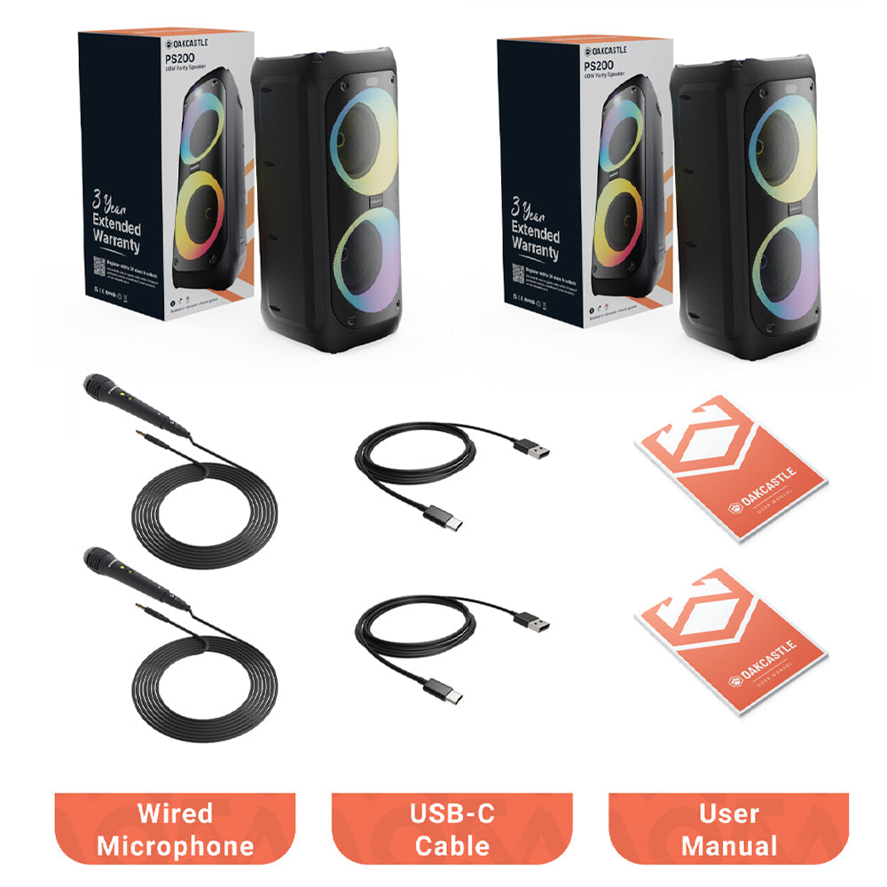 Majority PS200 -Bundled Party Speaker 100w Bluetooth Karaoke-DJ-Party-PA System - Black