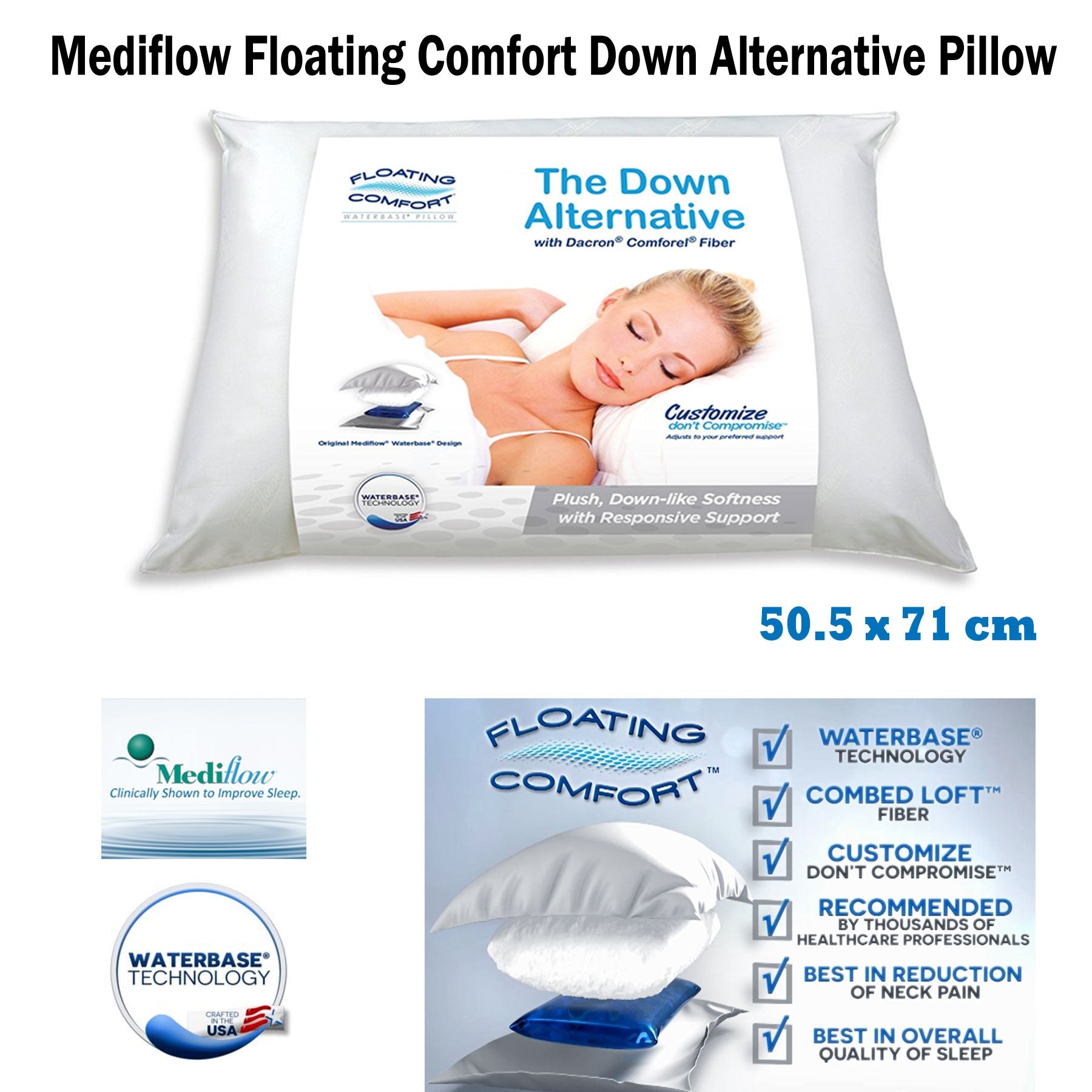 Mediflow Adjustable Floating Comfort Down Alternative Waterbase Pillow