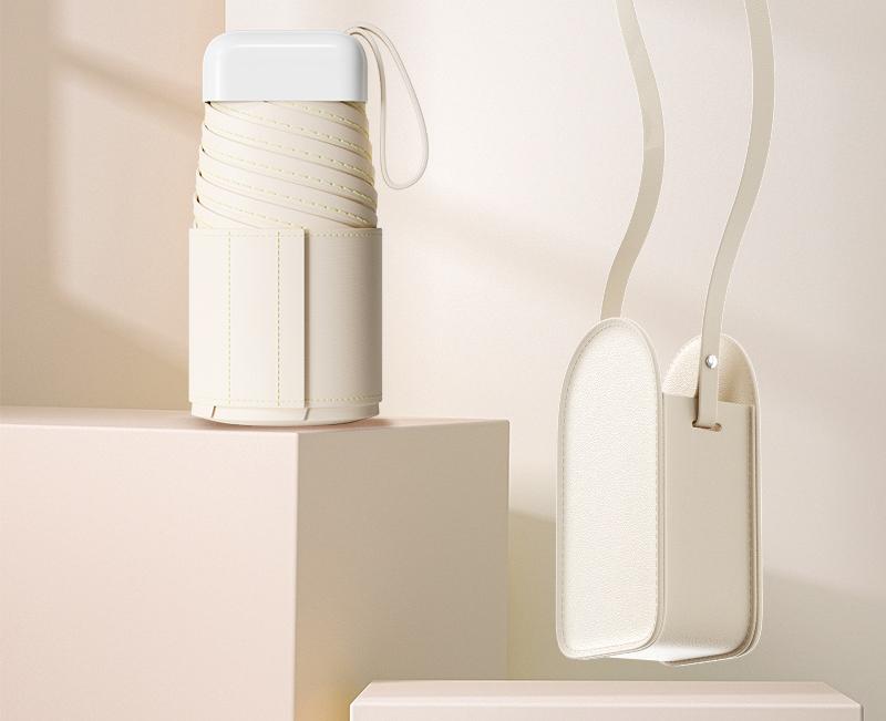 Mini Pocket Umbrella with Matching Crossbody Bag - UV Protection, 6-Rib Windproof Design(beige)