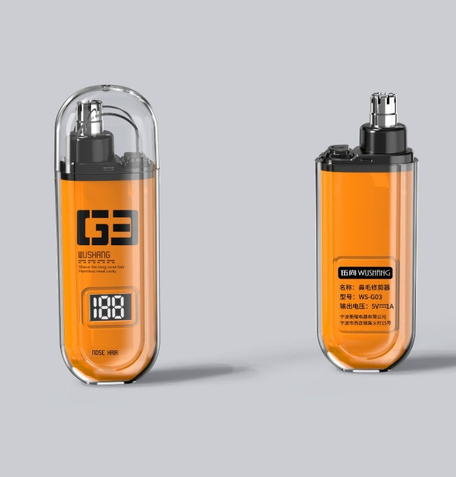 Orange Painless Electric Nose & Ear Hair Trimmer - USB-C Rechargeable Grooming Tool with LED Battery Display for Men and Women