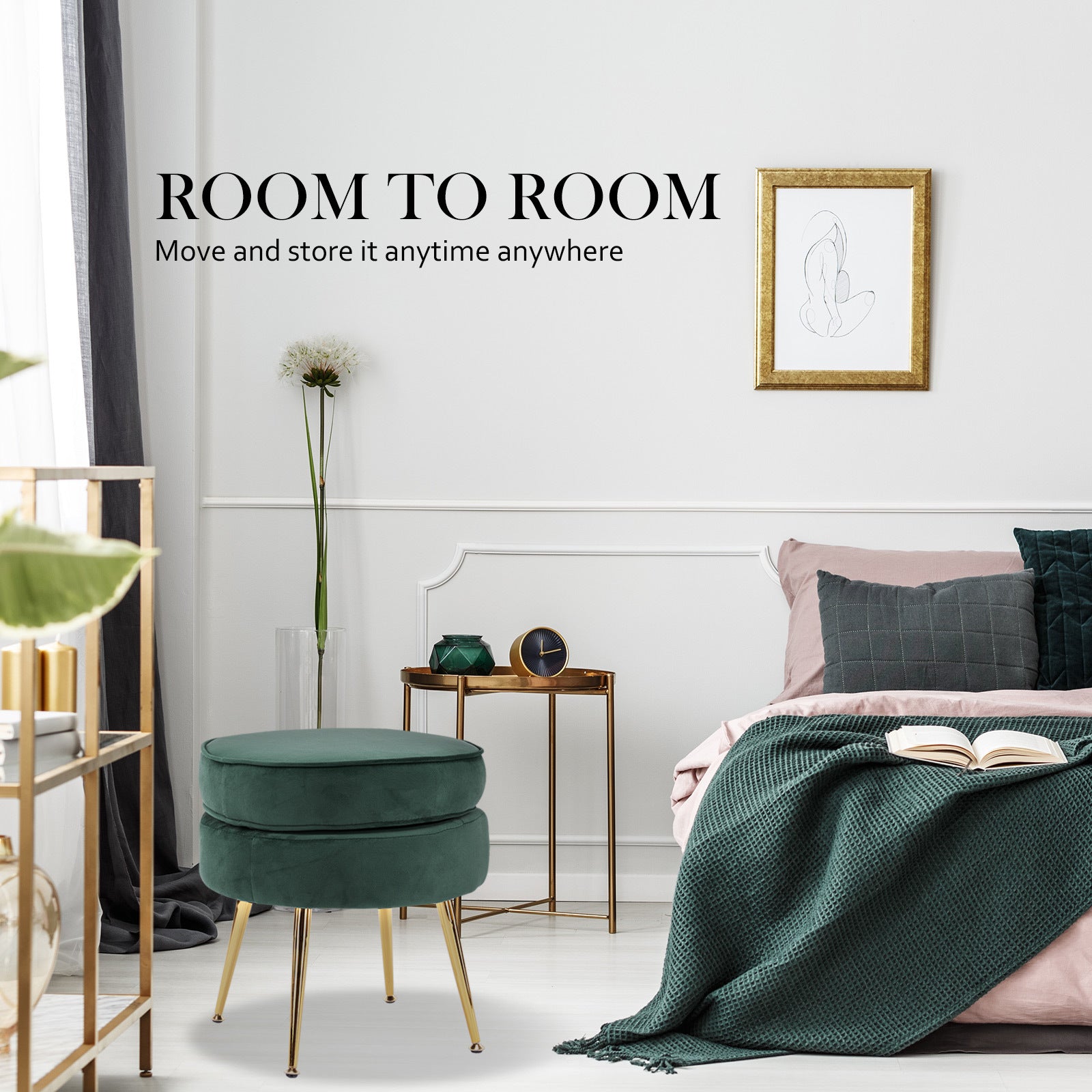 - 1 x Velvet Round Foot Stool