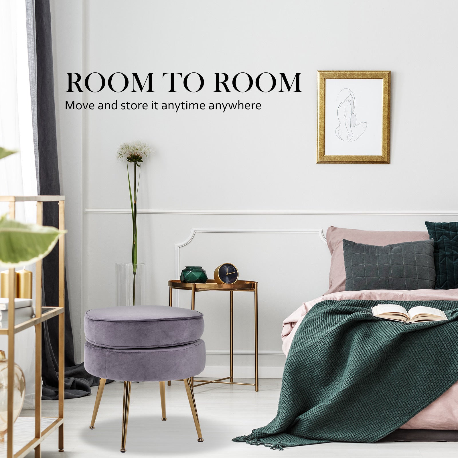 Ottoman Foot Stool Velvet Fabric Metal Leg Round GREY