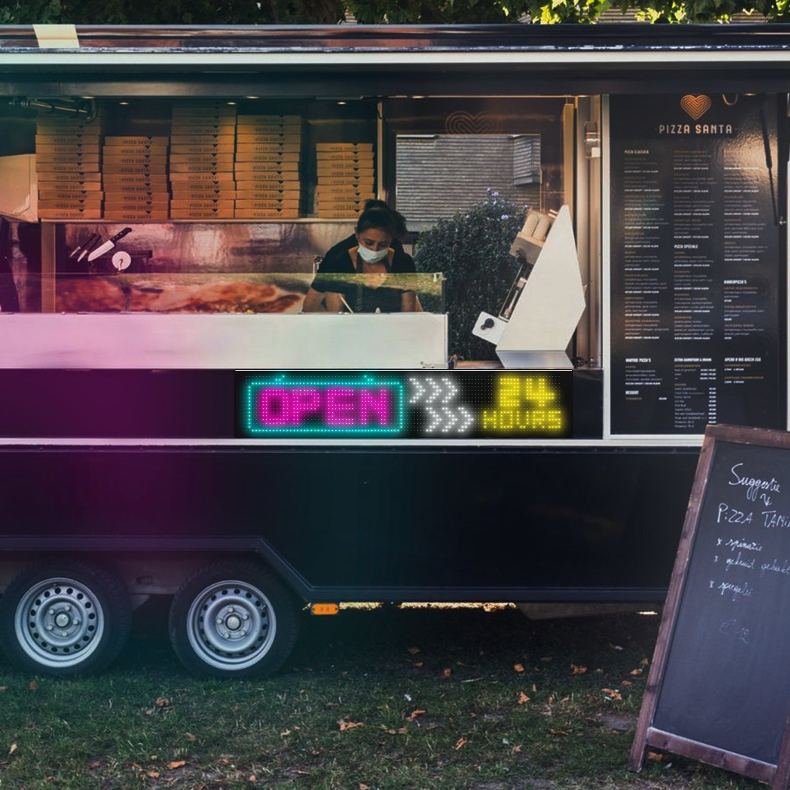 This programmable LED sign is controlled via a Bluetooth-connected app, allowing you to customize brightness, switch modes, and adjust settings with ease. Featuring 1536 RGB lamp beads, the screen delivers bright, colourful visuals. Its ultra-thin, flexible design is IP65 waterproof, making it durable and adaptable to various mounting spots. With full DIY functionality, you can display custom text and patterns to promote a business, share personal messages, or creatively express yourself on the go.