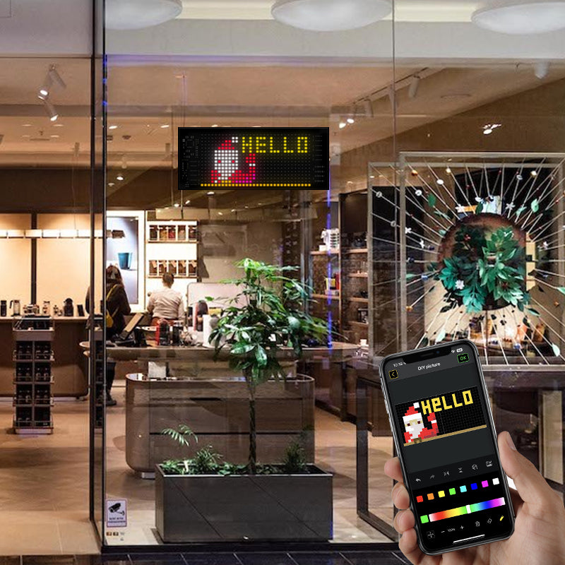 This programmable LED sign is controlled via a Bluetooth-connected app, allowing you to customize brightness, switch modes, and adjust settings with ease. Featuring 512 RGB lamp beads, the screen delivers bright, colourful visuals. Its ultra-thin, flexible design is IP65 waterproof, making it durable and adaptable to various mounting spots. With full DIY functionality, you can display custom text and patterns to promote a business, share personal messages, or creatively express yourself on the go.