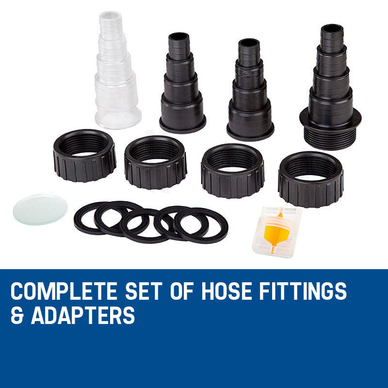 - Outlet / Inlet Hose Adaptor: 3/4', 1', 1-1/4', 1=1/2'
