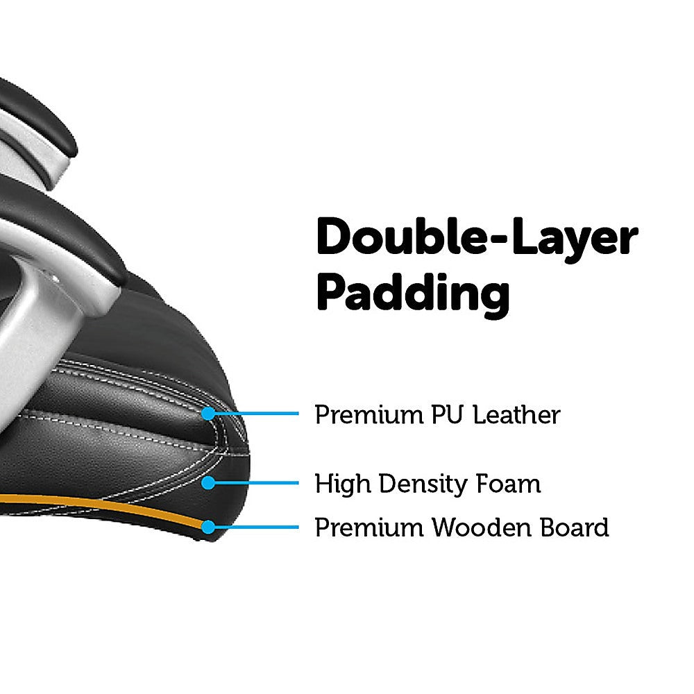 The executive office chair features independent gas lift height adjustment and tilt adjustments that you can use to ensure your hips are aligned and both feet are planted firmly on the floor - maintaining proper sitting posture is important to reduce body fatigue.