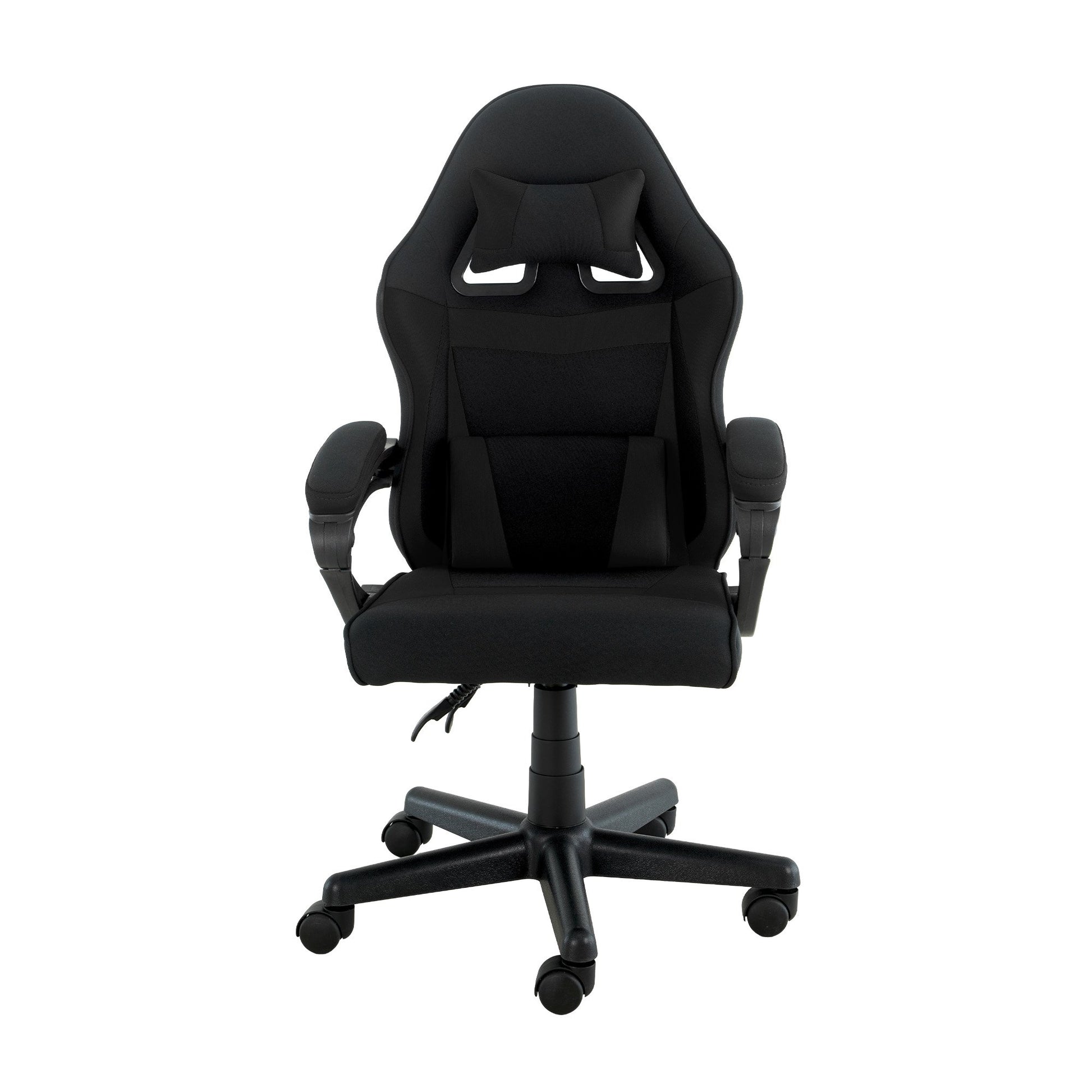 Give your setup a competitive edge with the Antre Study Gaming Chair. Designed for comfort and performance, it features a bold, motorsport-inspired profile with soft fabric upholstery and ergonomic support. The seat height adjusts easily with a Class 2 gas lift, while the dual tilt mechanism lets you recline and relax.