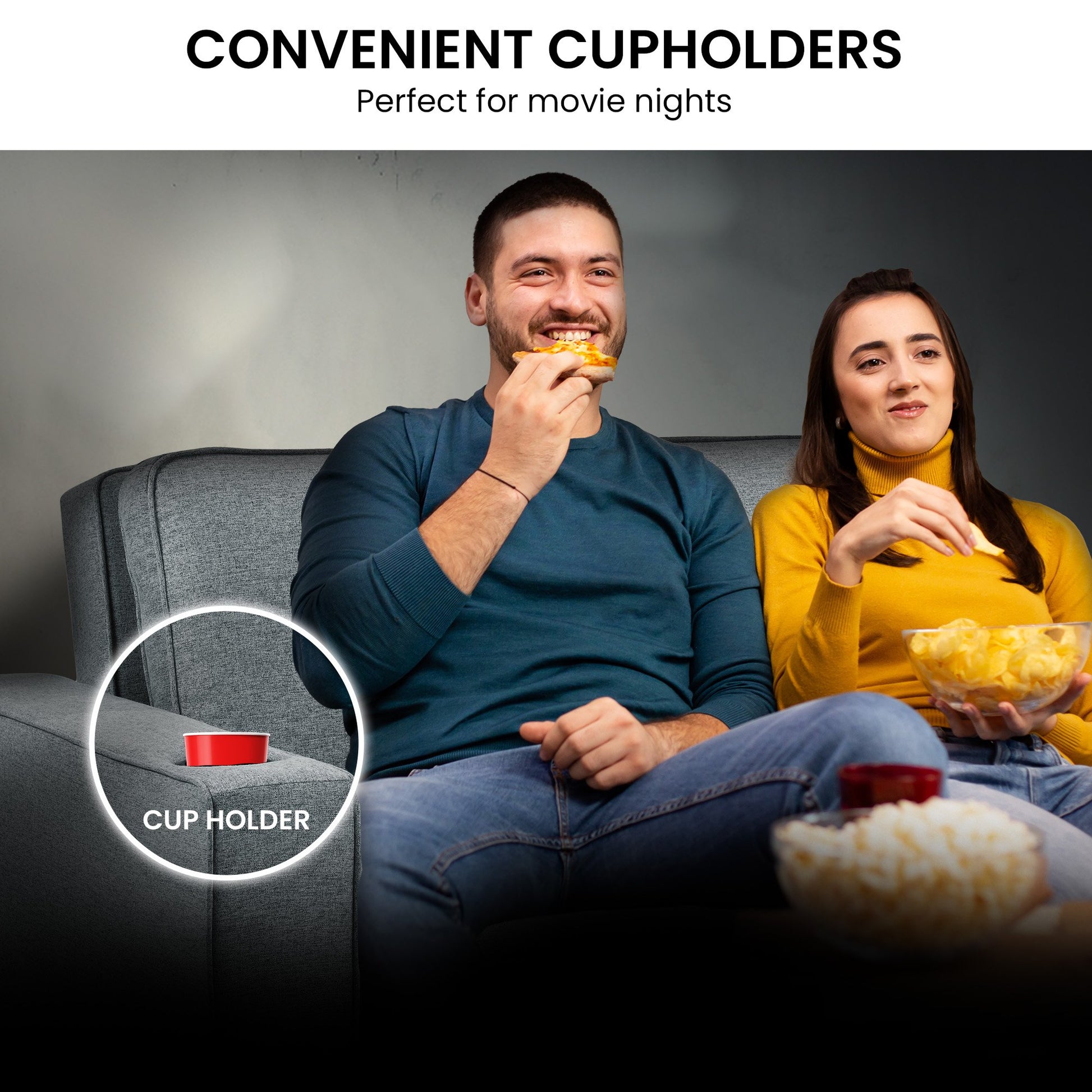 Sarantino Hoffman Linen Sofa Bed With Cushions & Cup Holders Dark Grey