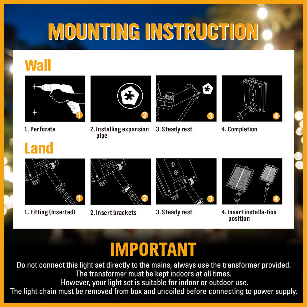 Note: Solar string lights can connected in 2 sets.