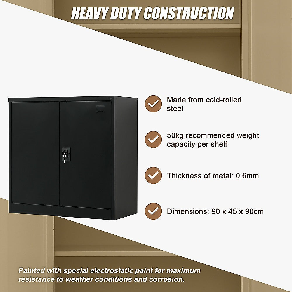 Two-Door Metal Short Cabinet Shelf Storage for Home Office Gym