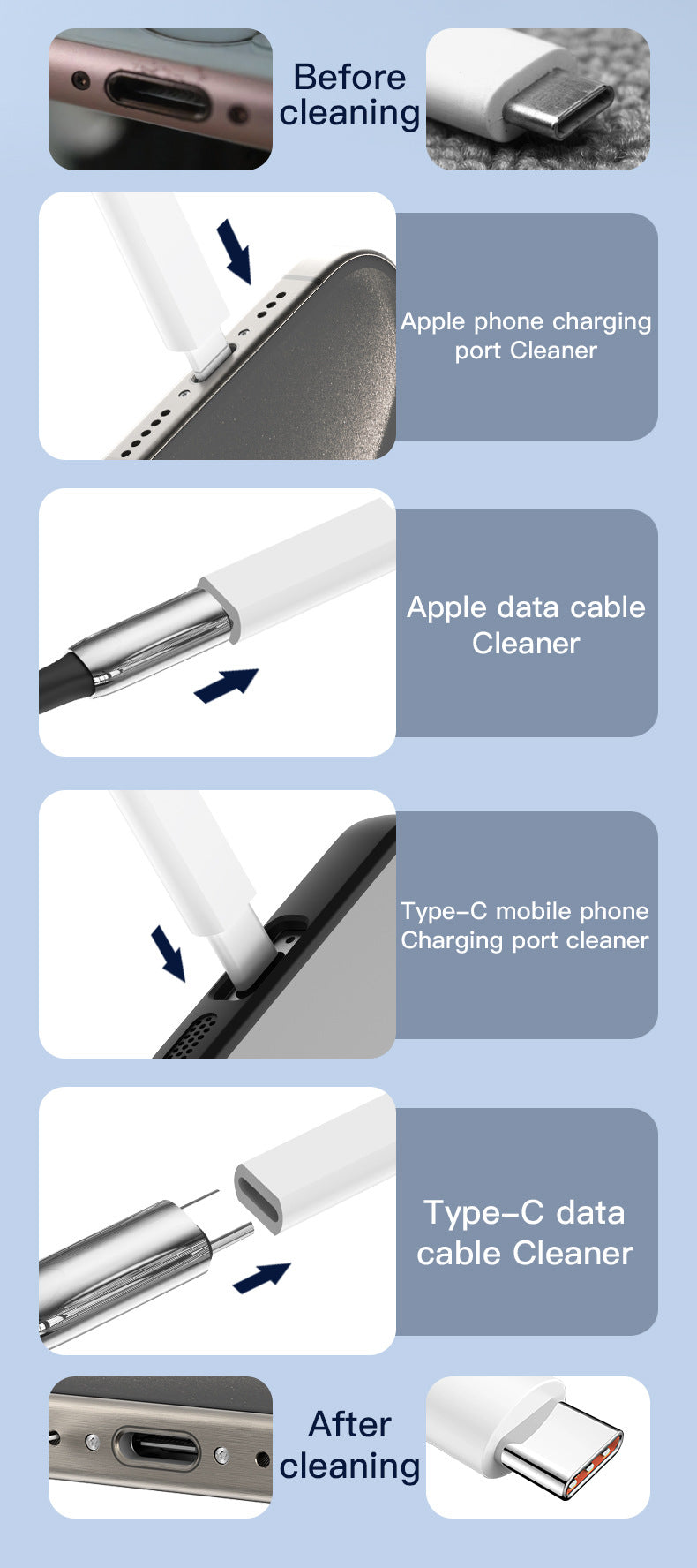 - Integrated Cleaning Tools: Hidden compartments neatly store multiple specialized tools for deep cleaning of keyboards, earbuds, screens, and more.