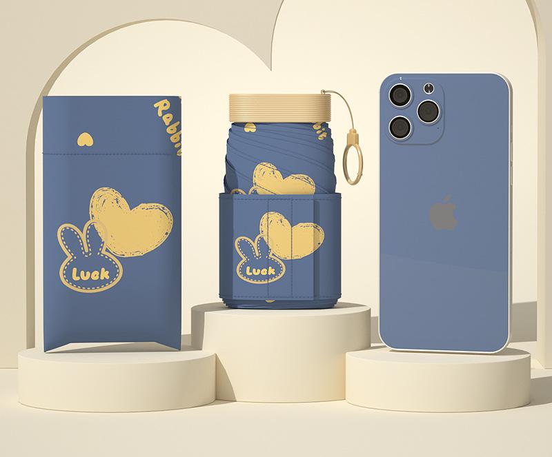 Ultra-Compact 7-Fold Folding Umbrella - UPF50+ Sun Protection & Portable Clip Design(Dark Blue)