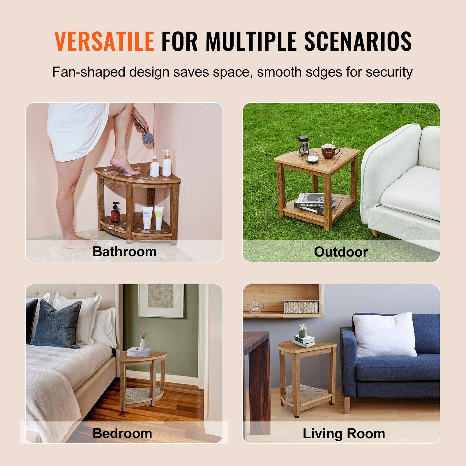 VEVOR Corner Shower Bench, 18.5" Height 17.75" Radius, Faux Wood Grain Polystyrene,159KGS with Storage Shelf, Water Resistant, Shower Stool for Inside & Outside Shower, for Bathroom, Living Room