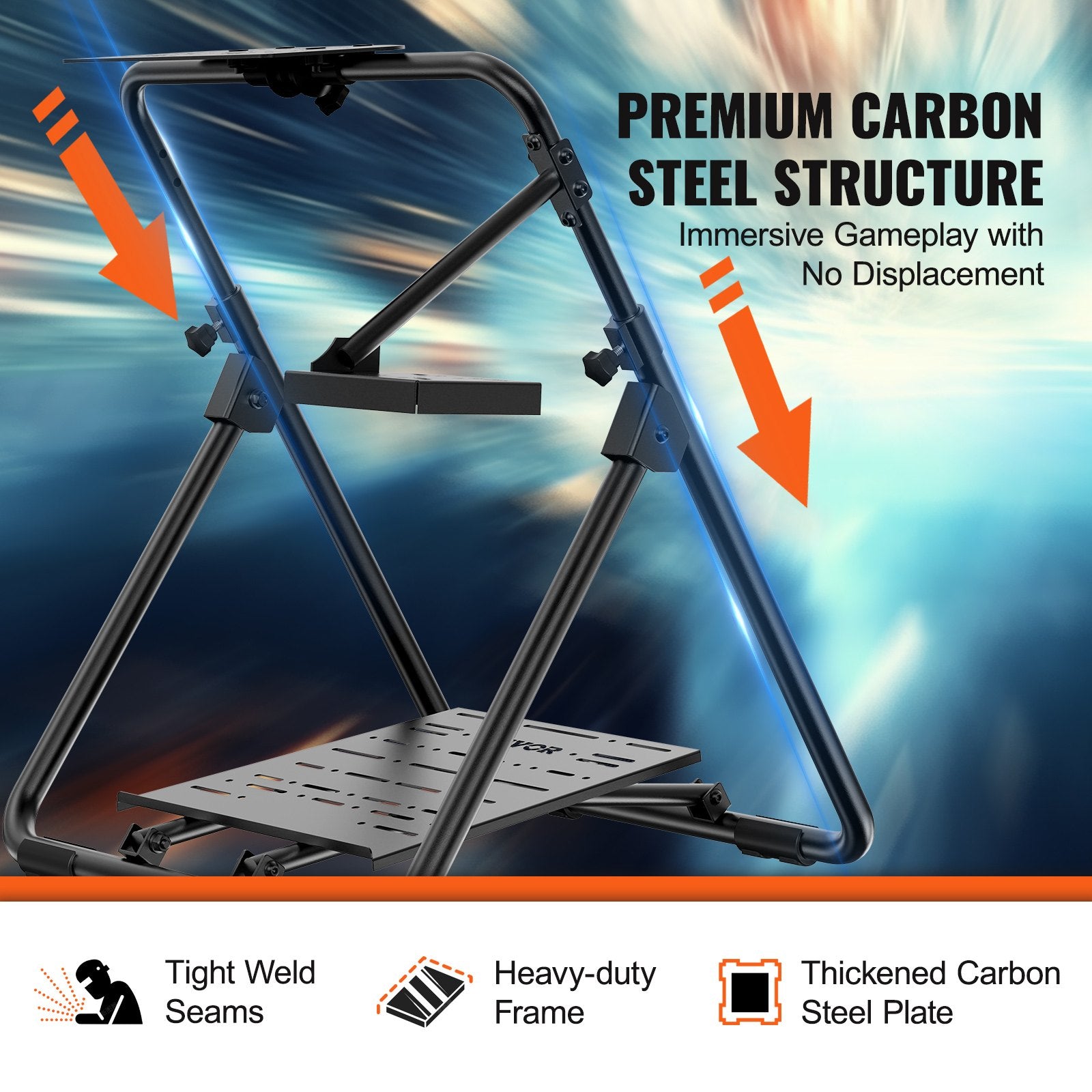 VEVOR Foldable Racing Steering Wheel Stand, Height Adjustable Universal Base Compatible with Logitech & Thrustmaster Racing Wheel and Pedal, Heavy-duty Frame Standard GT/Formula Seating Portable