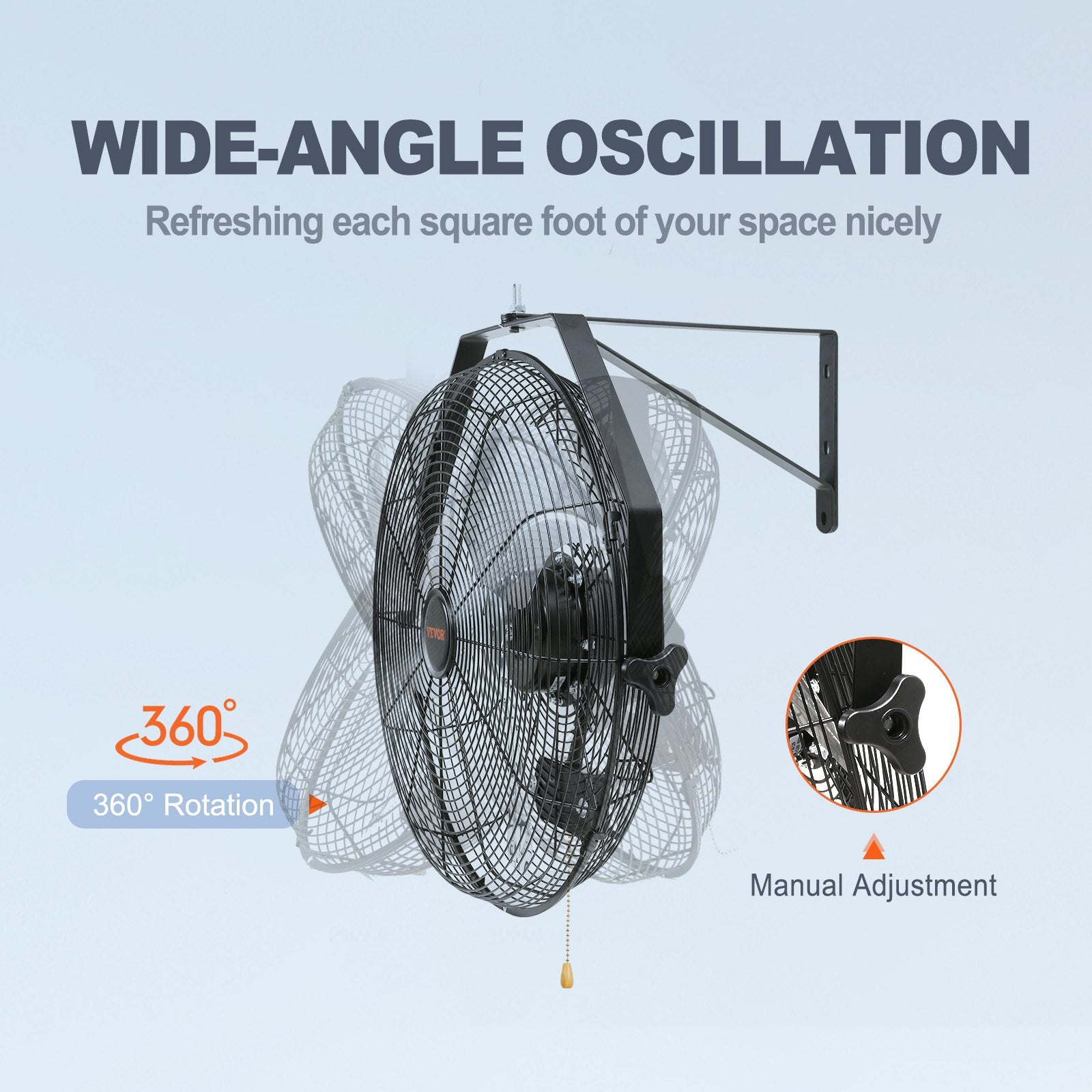 Get ready to reach every corner of the room! The 17.6'' weatherproof wall fan can be tilted vertically for optimum airflow. Get ready for a complete heavy-duty metal construction with aluminum blades for easy disassembly and cleaning.