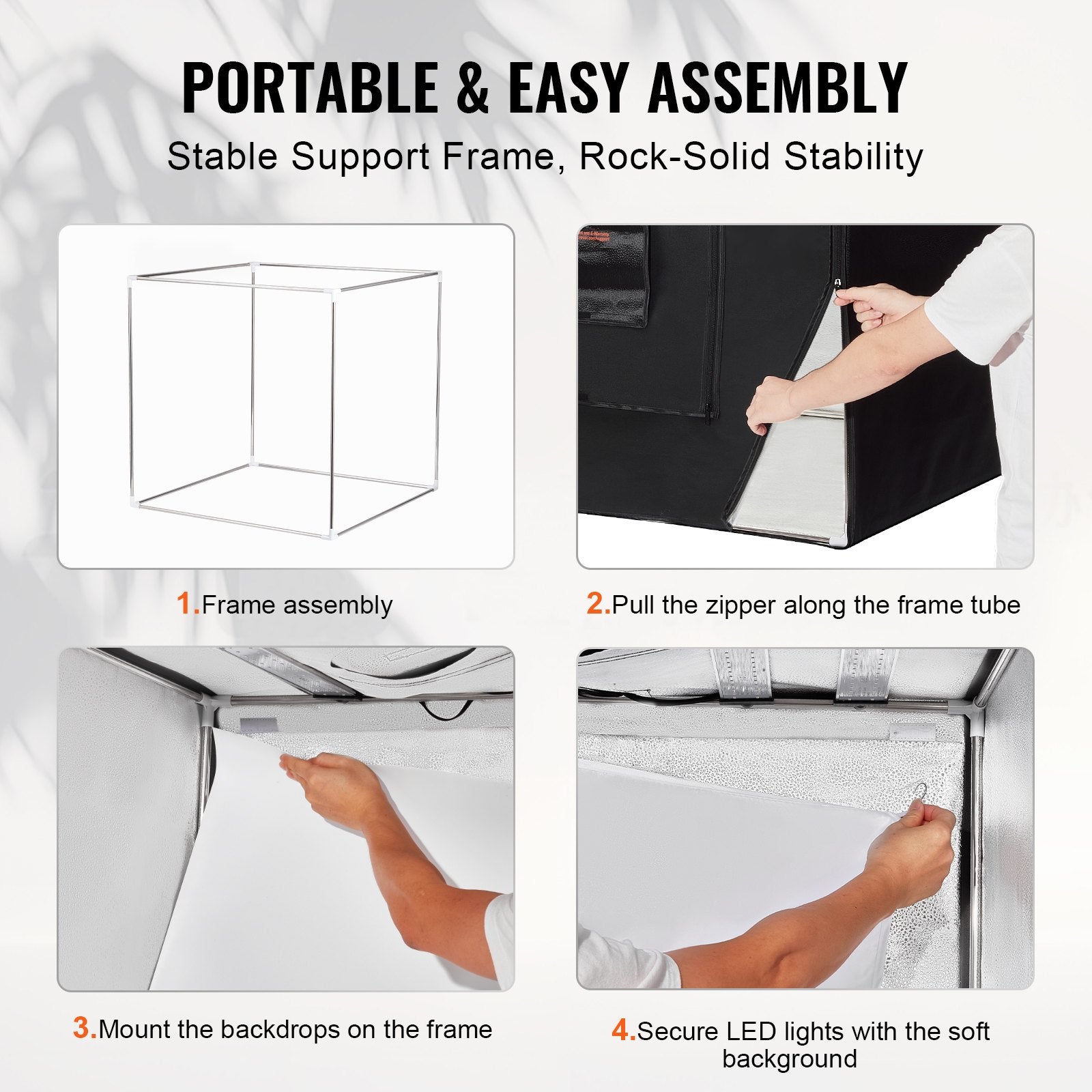 VEVOR Photo Studio Light Box 5600K with 210 LED Lights Power Adapter,100 x 100 x 100 cm